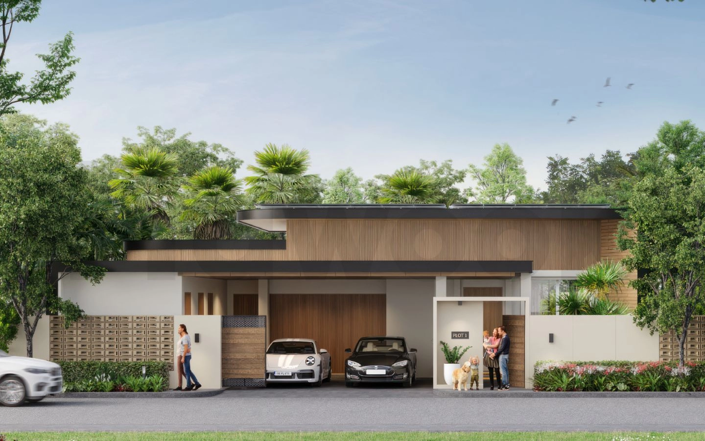 - Open Views and Shaded Terraces: Unobstructed garden views thanks to cantilevered concrete roofs with no columns.