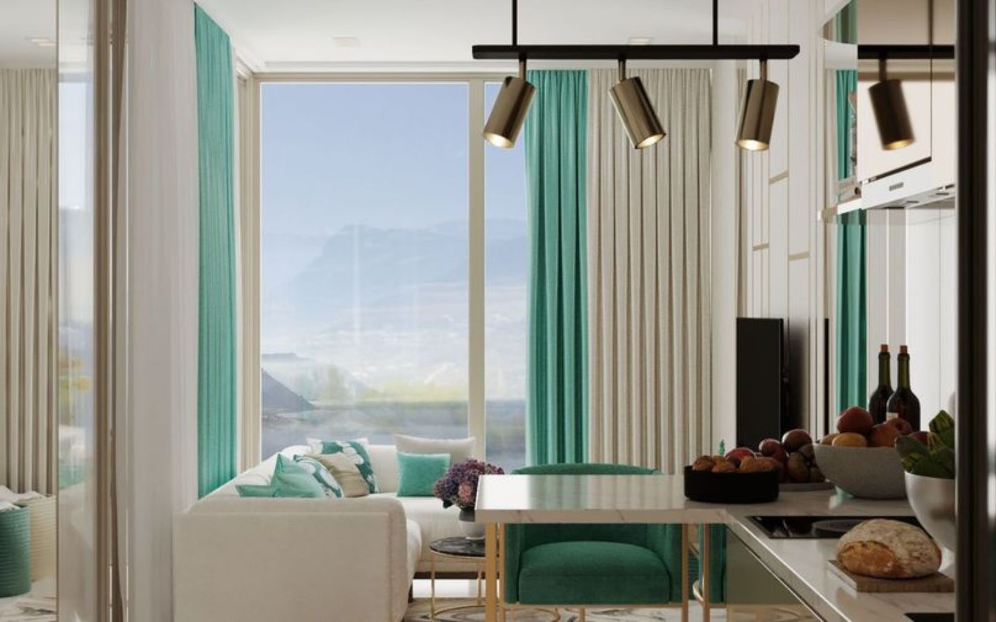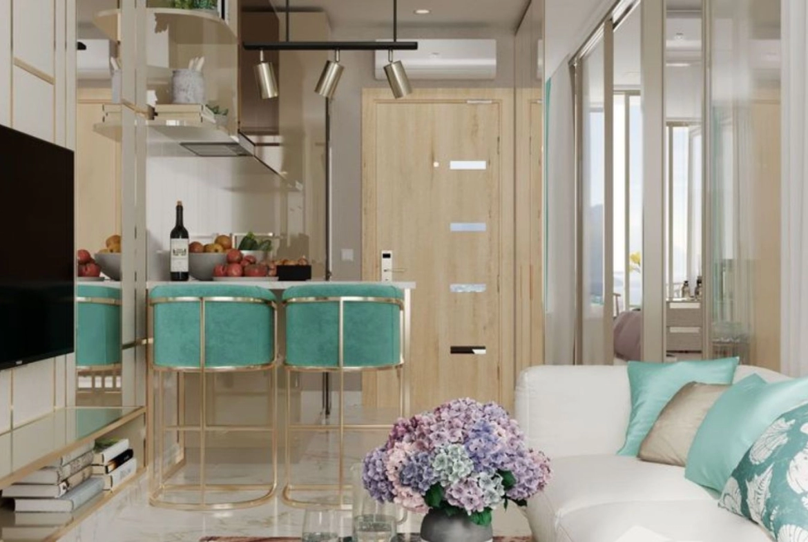 - 1 bedroom, 1 bathroom: 34 – 38 sq.m