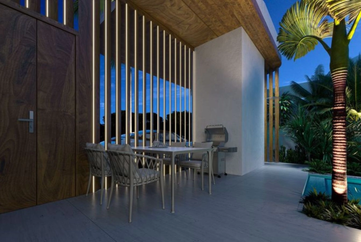Step outside to discover your private oasis. A glistening pool beckons you to cool off in the tropical warmth, while the surrounding outdoor area offers ample space for relaxation, sunbathing, or dining under the stars. It’s a haven of privacy and relaxation, just steps from your doorstep.