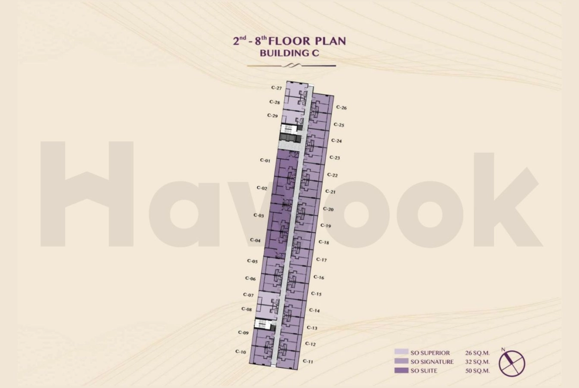 • Unit Types: 26 sq.m. / 32 sq.m. / 50 sq.m.