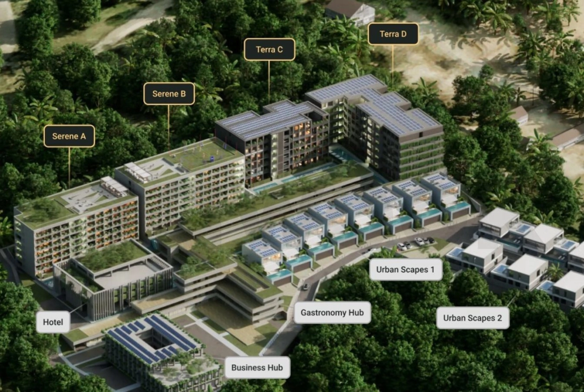 Urban Scapes Layan is a distinguished townhouse and villa project situated in Choeng Thale, Phuket. This development, scheduled for completion in November 2027, comprises 8 exclusive units and is developed by Serene Surin Co. Ltd., the creators behind Serene Condo Layan, Terra Grove Layan, and Serene Condominium Phuket.