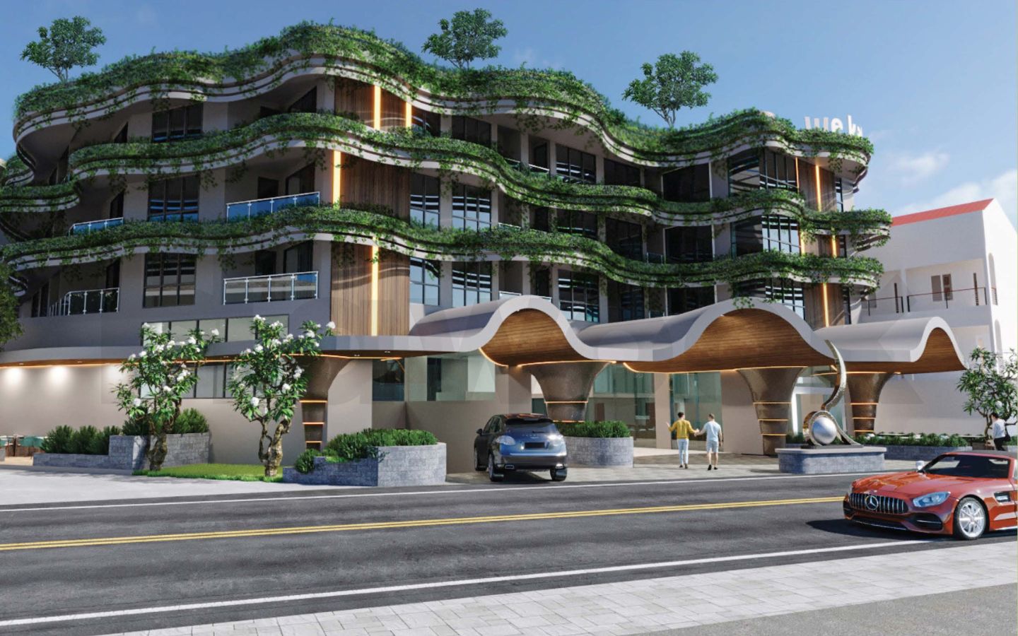 Wekata 3’s design integrates natural elements with smooth lines, blending seamlessly into the classic angular architecture of the tourist area. The complex includes panoramic pools and bars on the rooftops, offering stunning views.